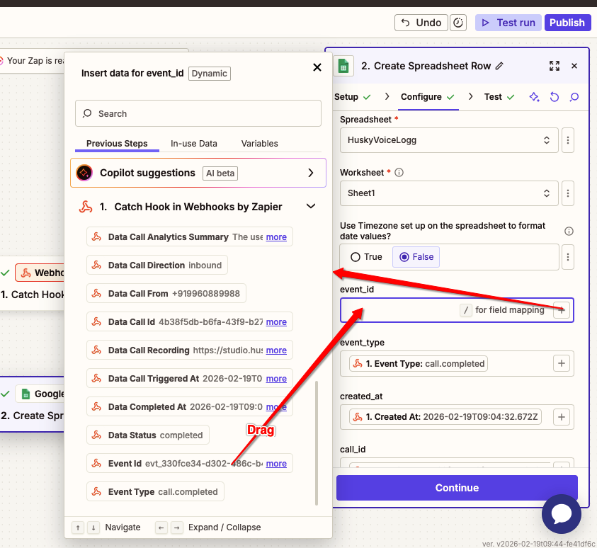 HuskyVoiceAI → Google Sheets Integration ( Zapier )